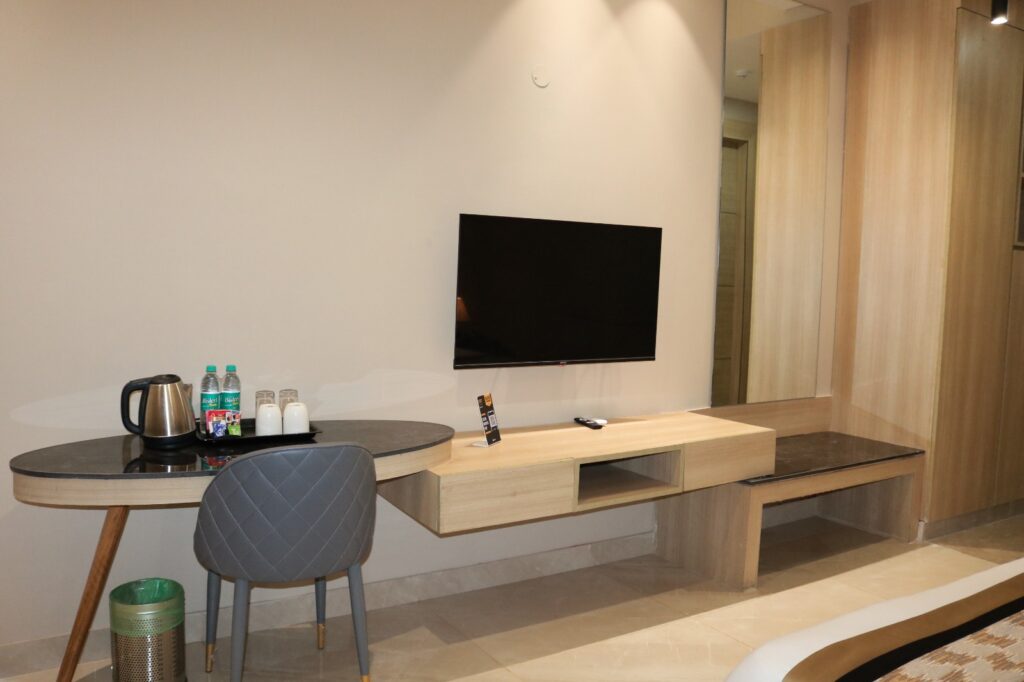 “Designed with elegance, our Suites offer a separate living area and bedroom, king-size comfort, and premium amenities — perfect for guests who want luxury and homeliness near Medanta.”